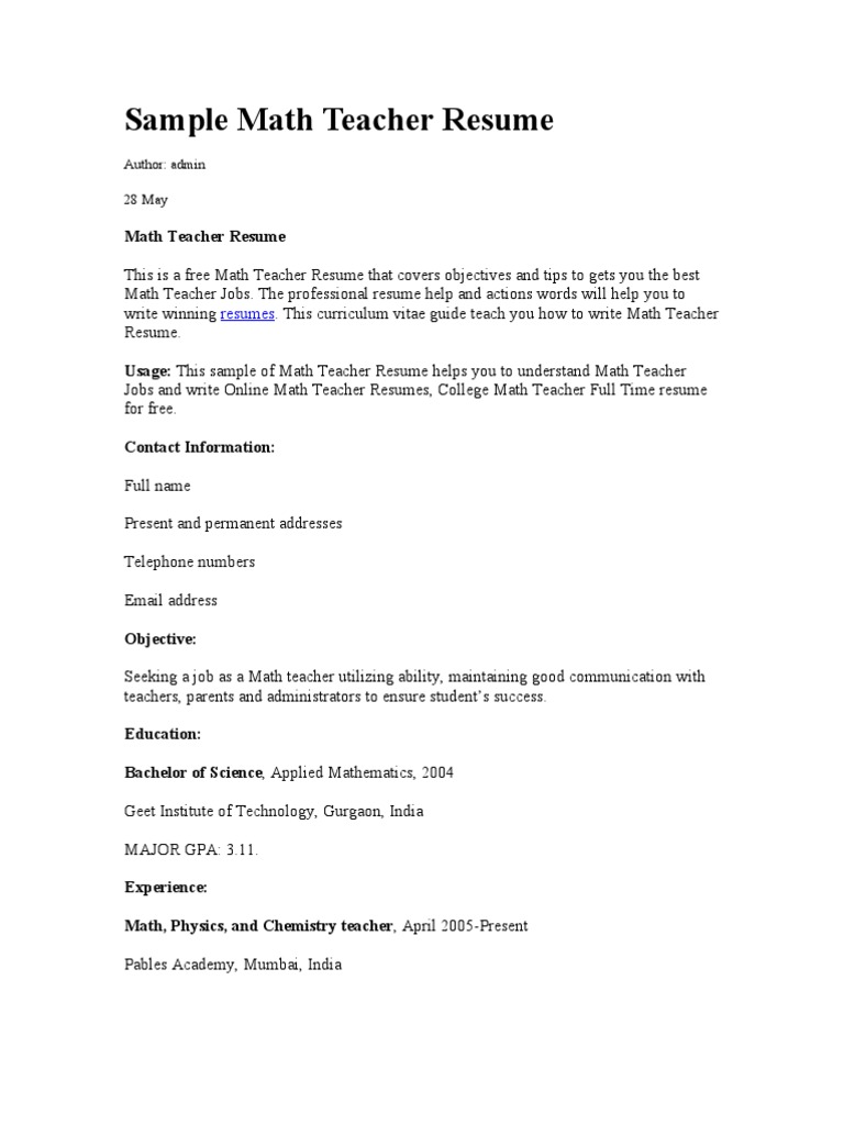 Resume teachers resume fresher teacher resume a fresher teacher who is trying to obtain an entry level position in the educational sector must have completed at least a bachelors degree in teaching field and have a good command over the subject of specialization. She writes covering myriad of fields that includes resume writing tips job search advices career advices current trends in job search career advices current trends in job search like job alerts visual resume etc and career advices. Akanshaarora akansha arora is a professional writer and blogger who loves to pen down her views on a number of topics that interest a reader. Download free cv resume format for teacher and.